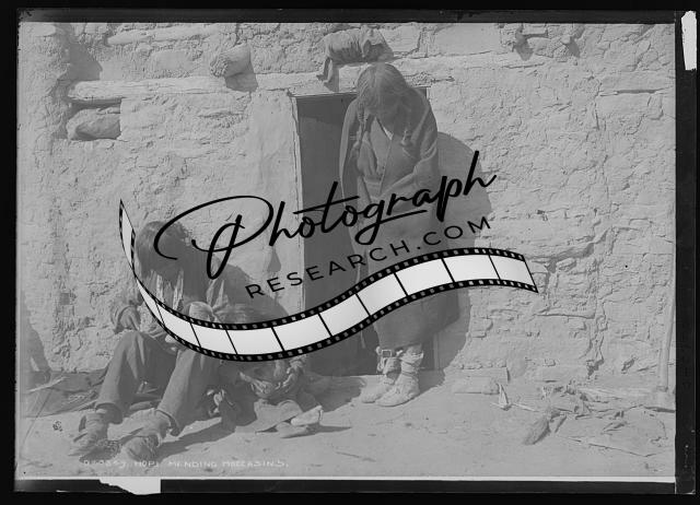 Hopi mending moccasins,sewing,Indians,Native Americans,Detroit Publishing,1900