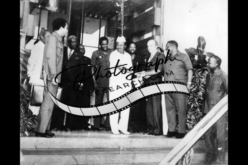 President Tolbert with other men at public entrance to the executive mansion, Monrovia, Liberia