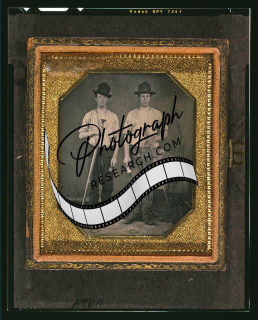 Occupational Portrait of Men,holding floor rammers,foundry tools,packing sand