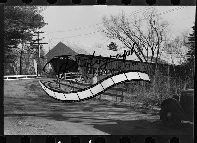 Unidentified Covered Bridge,Automobile,Farm Security Administration,FSA