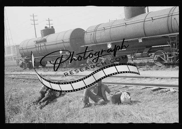 Men seated next to railroad tracks,Train,Farm Security Administration,FSA,4