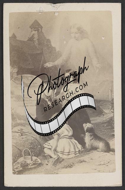 The Orphans,1860-1869,Children,dog,visiting grave of parents,churchyard,angel