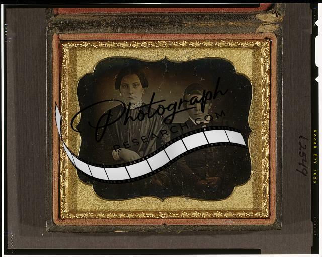 Unidentified woman,arm resting on a table with tablecloth,c1855,Francis Grice