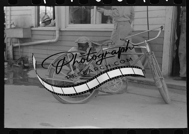 Inflating bicycle tire,Abbeville,Louisiana,LA,Farm Security Administration,FSA