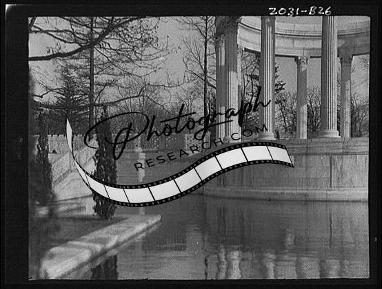 Untermeyer garden,columns,stone structure,bridge,water bodies,Arnold Genthe,1917