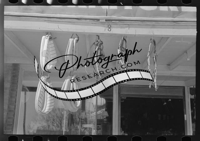 Garden tools in front of hardware store,Eudora,Arkansas,AR,FSA,January 1939