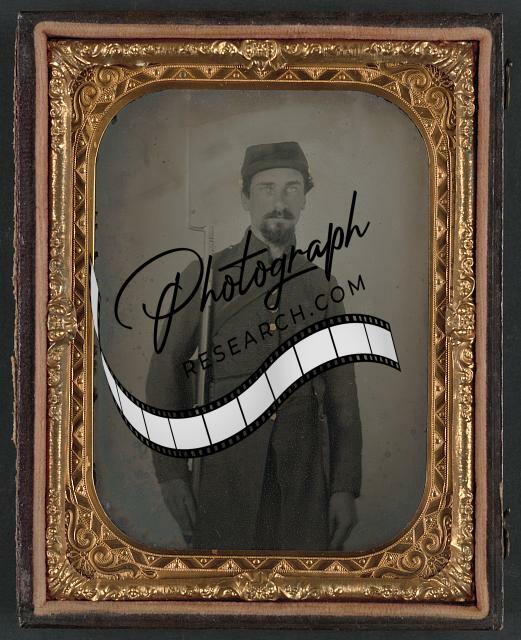 Title: [Unidentified sergeant in Confederate uniform and Company G hat with revolver]