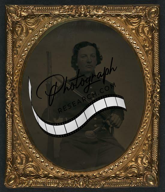 Title: [Unidentified soldier in Union cavalry uniform and shoulder scales with saber]