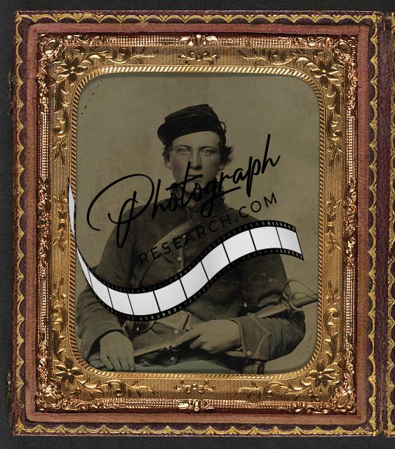 Title: [Unidentified soldier in Union uniform with cavalry saber and cap box]