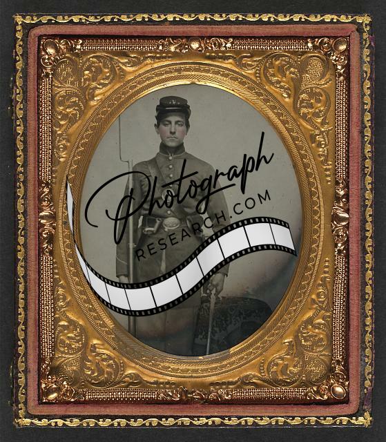 Unidentified Soldier,Union Uniform,Cavalry Saber,Cap Box,American Civil War,1865