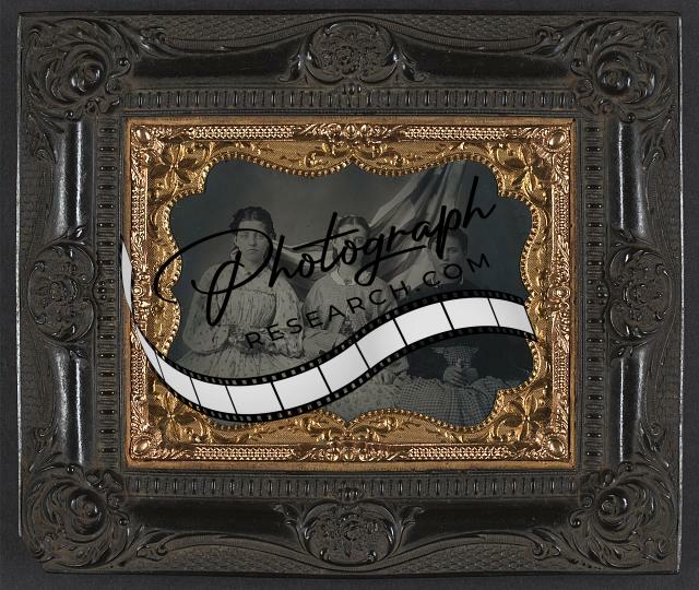 Unidentified Young Women in Dresses,American Flag,1860-1870,Females