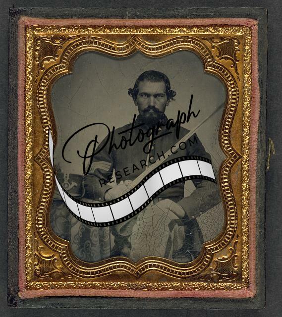 Title: [Unidentified soldier in Union uniform with musket, revolver, and bayonet with scabbard]