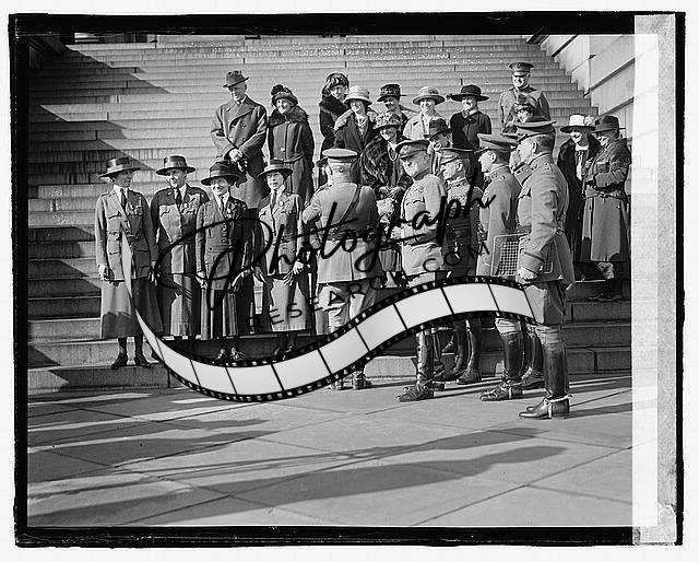 Unidentified uniformed women,men,ceremony on steps,1923,4