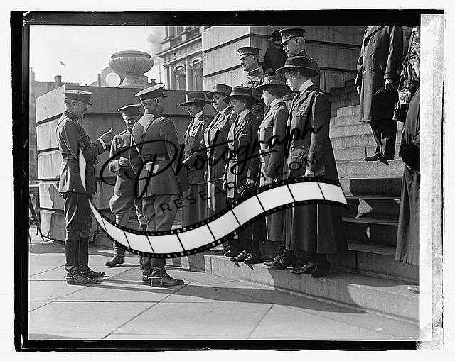 Unidentified uniformed women,man,ceremony on steps,1923