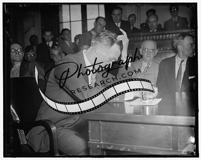 Title: Union Representative displays bullet wound received from Harlan County sheriffs. Washington, D.C., April 27. A.T. Pace, Representative of the United Mine Workers, inspects the bullet wound in the back of Thomas Ferguson, Coal Miner Representative, who testified before the Senate Civil Liberties Committee the he was shot by Harlan County, Ky., deputy sheriffs last January. Ferguson displayed a bloody shirt to the Committee to prove his contention, 4/27/1937