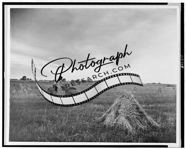 Man gathering shocks of wheat,Southern Illinois,IL,1930,Harvesting,Farming