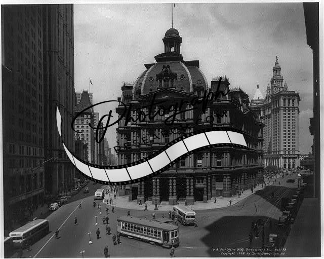 US Post Office Bldg,Broadway & Park Row,NYC,c1938,Bus