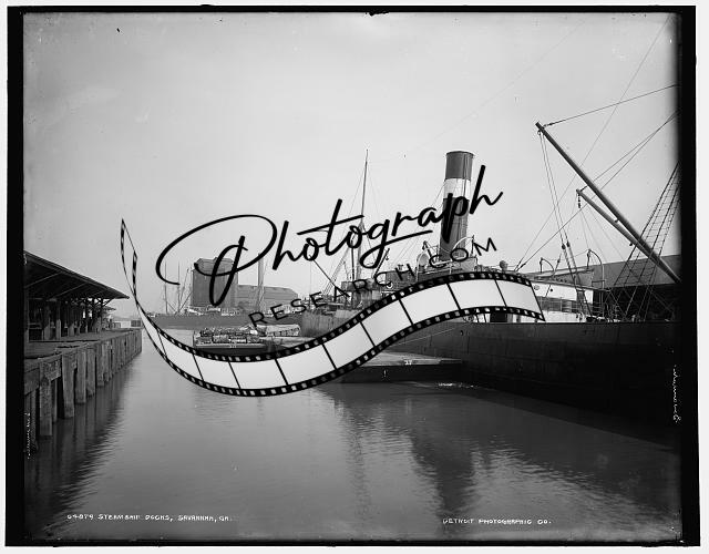 Steamship docks,piers,wharves,boats,buildings,Savannah River,Georgia,GA,1890
