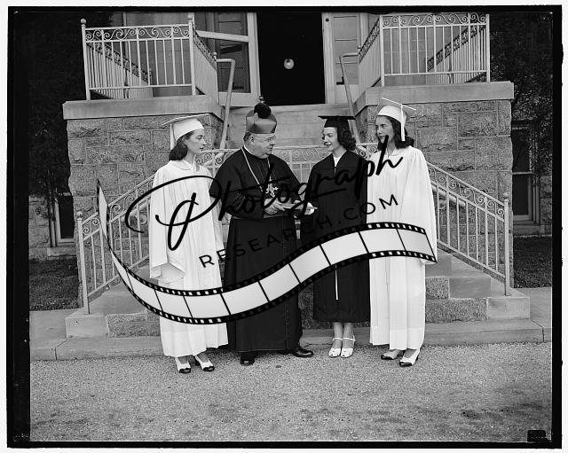 Title: United States Naval Academy graduation. Washington, D.C., June 6. The United States Naval Academy, Annapolis, Maryland, held its 1940 graduation exercises today. Principal address to the graduates was delivered by Charles Edison, Secretary of the Navy, who is shown in this picture giving a diploma to Lyle Bernard Ramsey, Honor Man, at the Academy