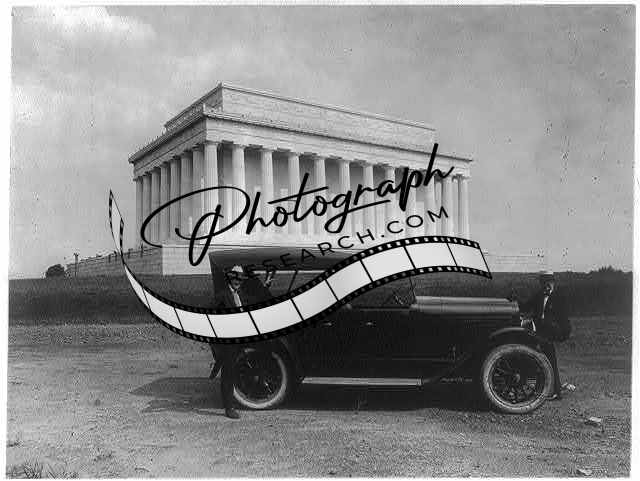 King car parked near Lincoln Memorial,Washington,D.C.,1920,automobile,two men
