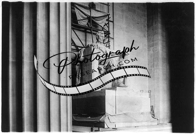 Interior of Lincoln Memorial,showing statue of Lincoln from left of center,1920s