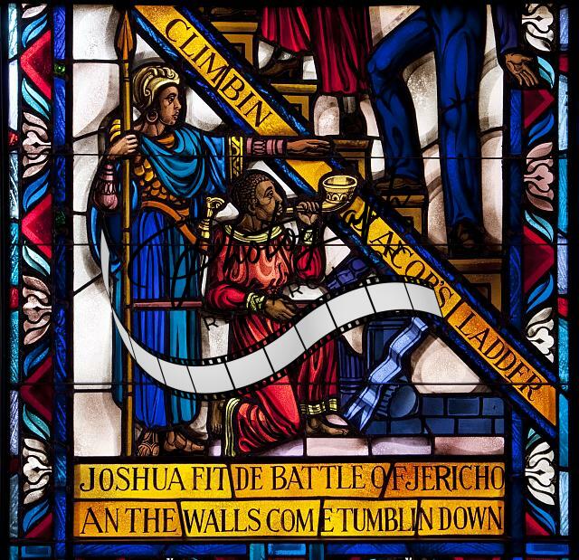 Title: Singing Windows stained glass, designed by J&R Lamb, located in the University chapel at Tuskegee University, Tuskegee, Alabama