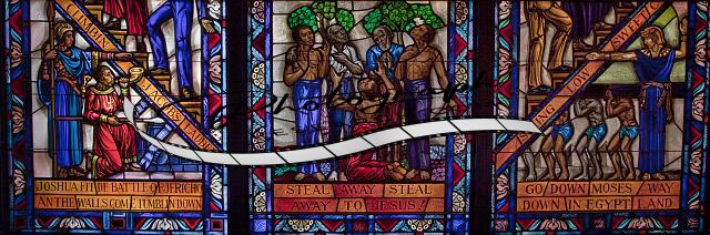 Title: Singing Windows stained glass, designed by J&R Lamb, located in the University chapel at Tuskegee University, Tuskegee, Alabama