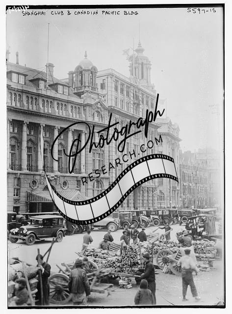 Shanghai Club,Canadian Pacific Buildings,structure,automobiles,wheelbarrows,cart