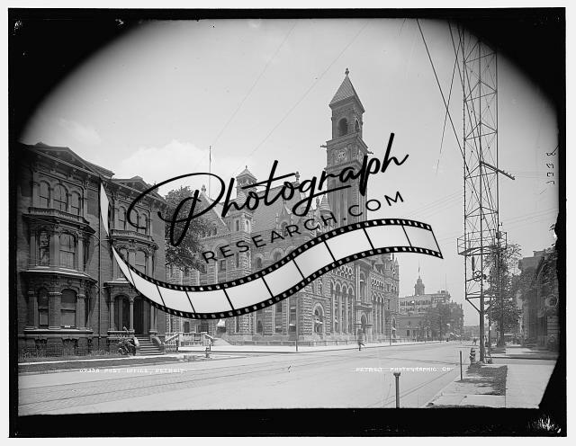 Post Office,government facilities,buildings,streets,Detroit,Michigan,MI,1880