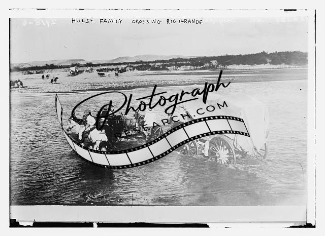 Hulse family crossing Rio Grande River,horses,covered wagon,1910-1915