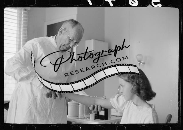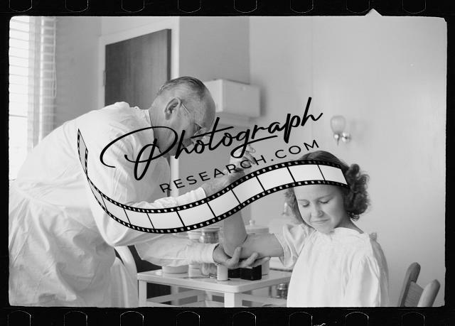 Doctor examines fractured arm,FSA Camp clinic,Weslaco,Texas,TX,United States,1