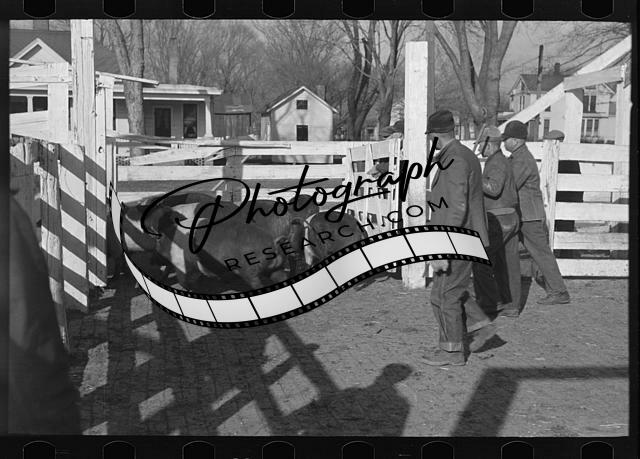 Unloading hogs at stockyards,Aledo,Illinois,IL,Resettlement Administration