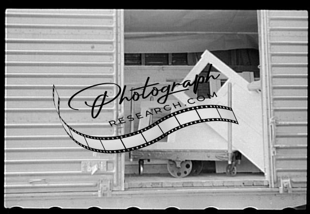 Freight car at sash & door mill,Dubuque,Iowa,IA,April 1940,John Vachon,FSA
