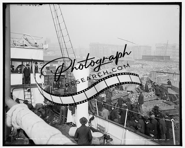Unloading banana steamer,shipping industry,fruit,cargo,Baltimore,Maryland,c1905