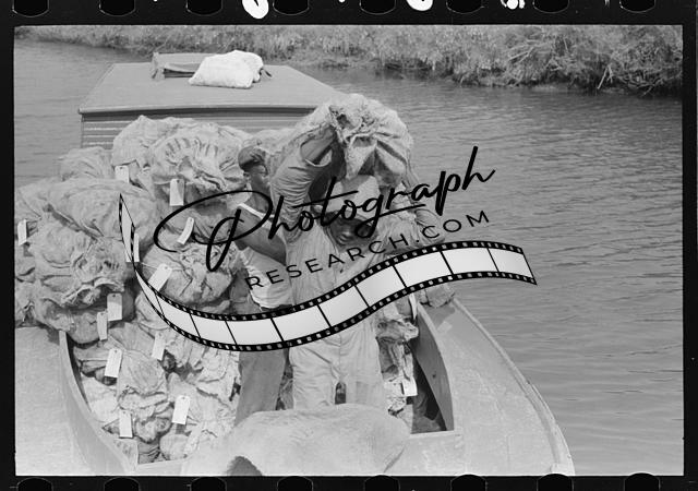 Unloading oysters from fisherman's boat,Olga,Louisiana,LA,FSA,September 1938,1