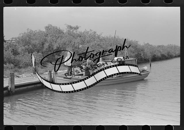 Oyster fisherman's boat at dock in canal,Olga,Louisiana,LA,FSA,September 1938