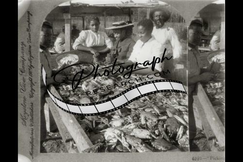 Picking crabs for market,on banks of Chesapeake Bay,Maryland,MD,c1905,meat