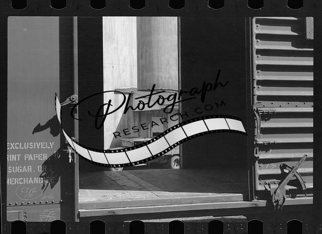 Empty freight car,truck,grain elevator,Minneapolis,Minnesota,MN,1939,Vachon,1