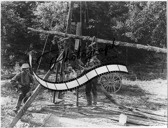 Drilling oil well with a gin or spring pole in the early sixties,c1922,men