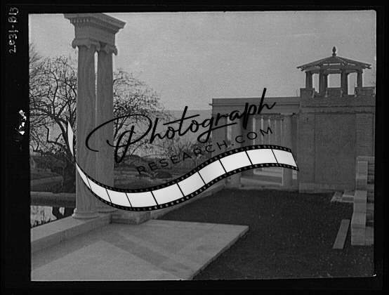 Untermeyer garden,columns,stone structure,bridge,water bodies,Arnold Genthe,1917