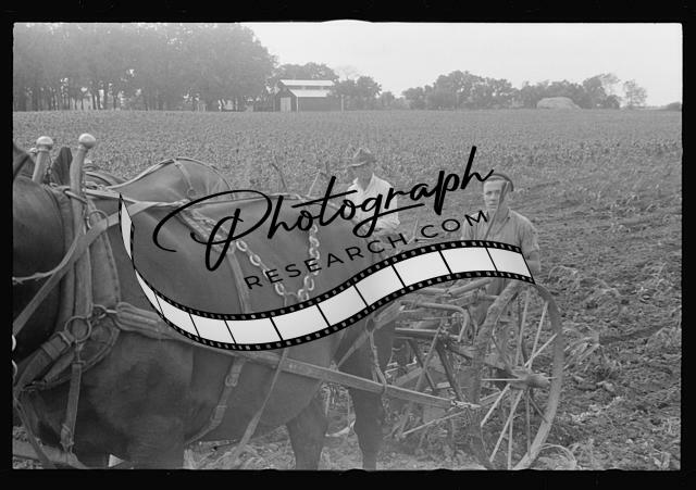 Cultivating corn with two-row cultivator,central Ohio,OH,Summer 1938,FSA 1
