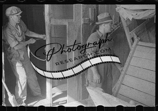 Unloading truck inside grain elevator,Plain City,Ohio,OH,Farm Security Admin,3