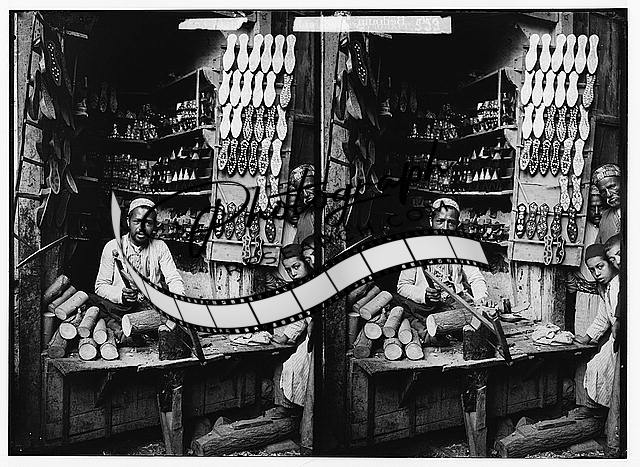 Damascene inlaid-slipper maker,Dan,Israel,Middle East,American Colony Photo