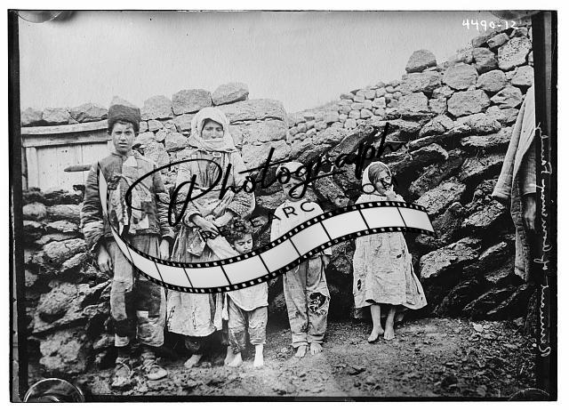 Remnant of Armenian family,woman,children,rock wall,Bain News Service