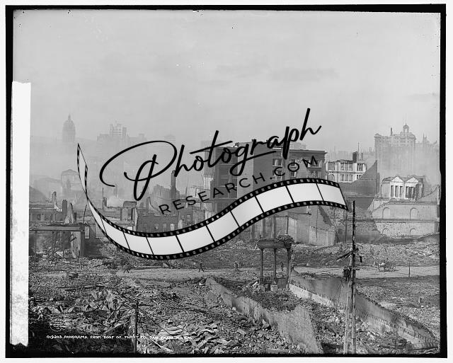 Panorama,roof,Ferry PO,earthquakes,damage,San Francisco,California,CA,c1906
