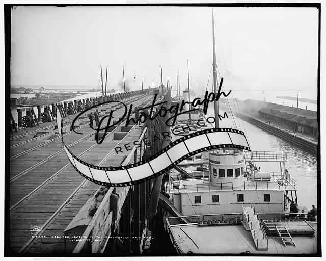 Steamer loading,South Shore Railway docks,shipping,Marquette,Michigan,MI,c1905