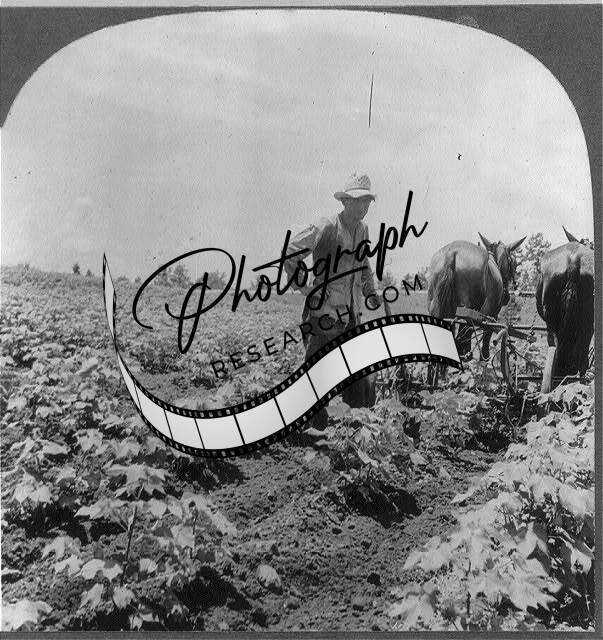 Eco. George Unit #4,cultivating cotton,man,horses,Farm Machinery,Agriculture