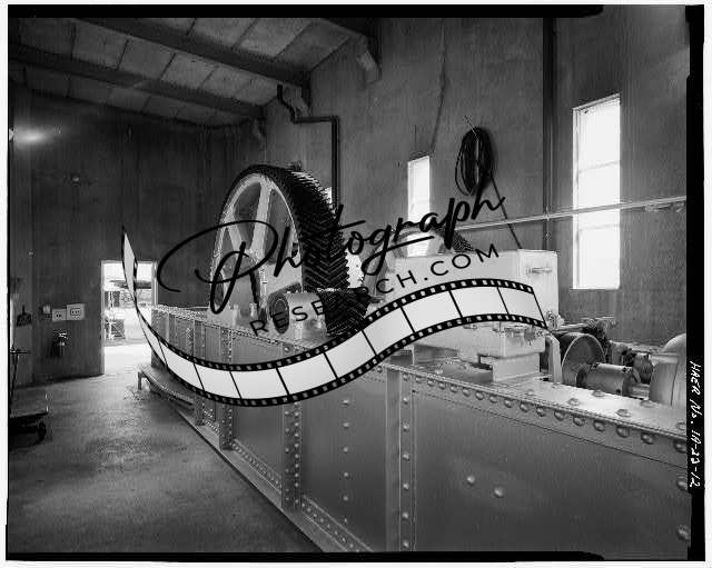 Title: 15. INTERIOR VIEW OF HEADHOUSE, SHOWING ROLLER GATE GAUGE AND WHEEL GEAR, LOOKING SOUTHEAST - Upper Mississippi River 9-Foot Channel, Lock & Dam No. 10, Guttenberg, Clayton County, IA