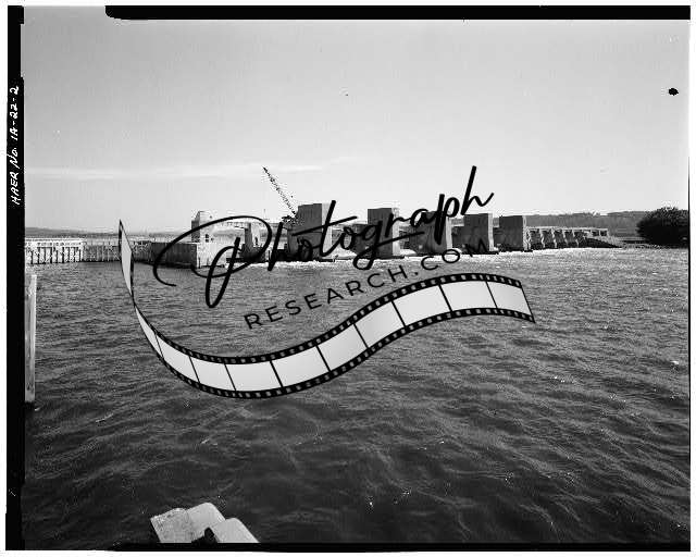 Title: 4. DETAIL VIEW OF DAM, SHOWING TAINTER AND ROLLER GATES, GATE PIERS AND DAM BRIDGE, LOOKING SOUTHWEST, DOWNSTREAM - Upper Mississippi River 9-Foot Channel, Lock & Dam No. 10, Guttenberg, Clayton County, IA