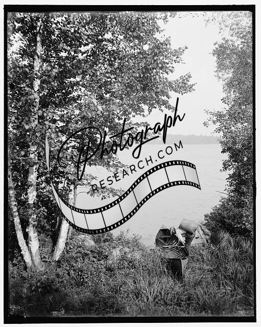 Raquette Lake,Adirondack carry,portages,canoes,boats,Mountains,New York,NY,1905